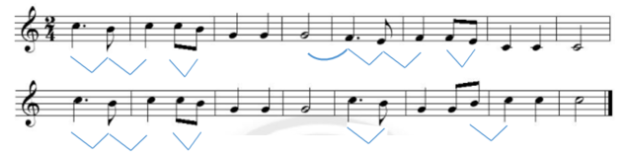 Tìm các quãng nửa cung và một cung trong Bài đọc nhạc số 4.