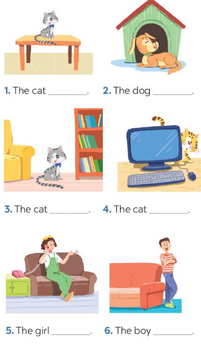 (Viết câu. Sử dụng giới từ chỉ nơi chốn.)