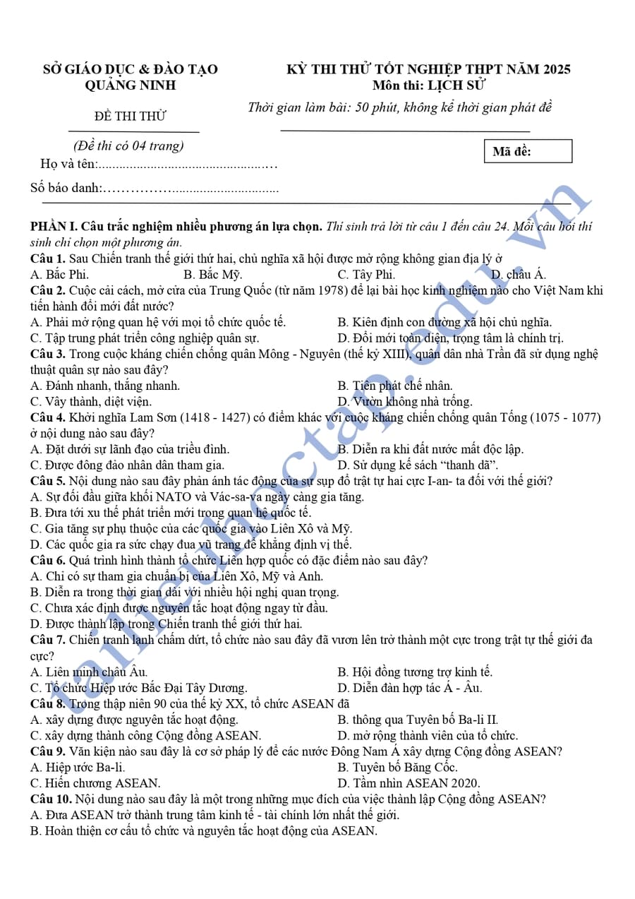 Đề thi thử lịch sử THPTQG tỉnh Quảng Ninh 2025 Đề thi thử lịch sử THPTQG tỉnh Quảng Ninh 2025 2 Đề thi thử lịch sử THPTQG tỉnh Quảng Ninh 2025 3 Đề thi thử lịch sử THPTQG tỉnh Quảng Ninh 2025 4