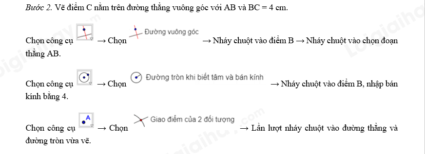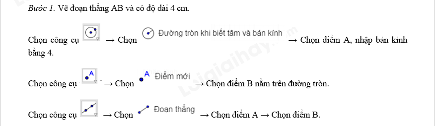 Sử dụng công cụ góc và làm tương tự như hoạt động 1 để vẽ hình vuông ABCD có cạnh bằng 4 cm