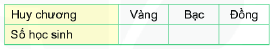 - Lập bảng với hàng đầu tiên là loại huy chương.