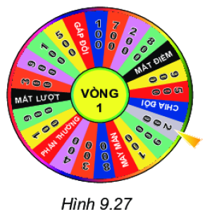 Quan sát hình 9.27 và liệt kê tất cả các kết quả có thể khi quay chiếc nón kì diệu.