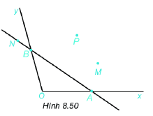 b) Lấy điểm I thuộc đoạn thẳng AB, điểm K nằm trên đường thẳng AB nhưng không thuộc đoạn AB. Hỏi điểm I có nằm trong góc xOy không? Điểm K có nằm trong góc xOy không?