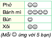 Biểu đồ tranh ở bên cho biết món ăn sáng yêu thích của các bạn trong lớp.