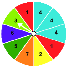 “Mũi tên chỉ vào ô ghi số 3 hoặc 5” có nghĩa là mũi tên chỉ vào một trong hai ô: số 3 hoặc số 5. Do đó chỉ cần mũi tên chỉ vào một trong hai ô này thì sự kiện xảy ra.