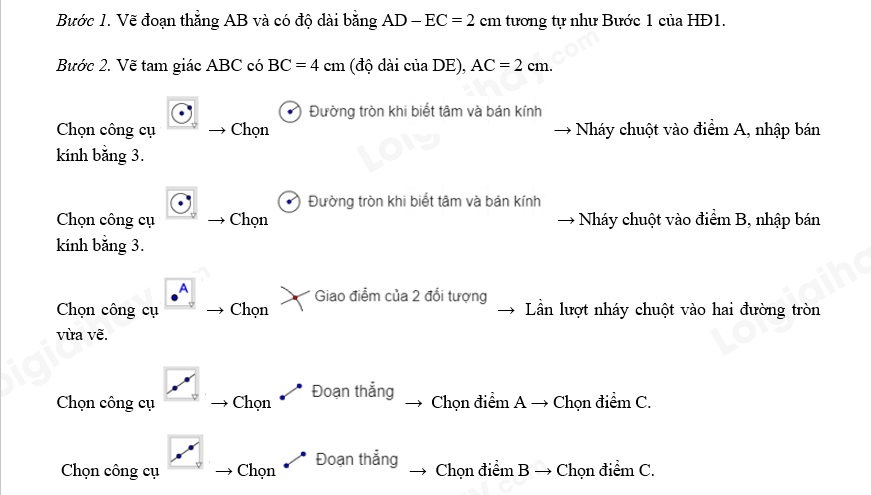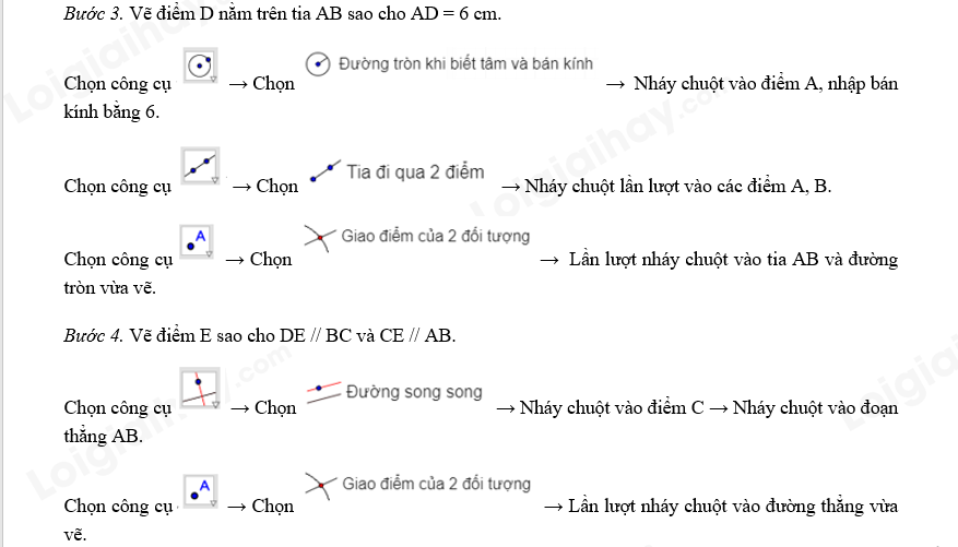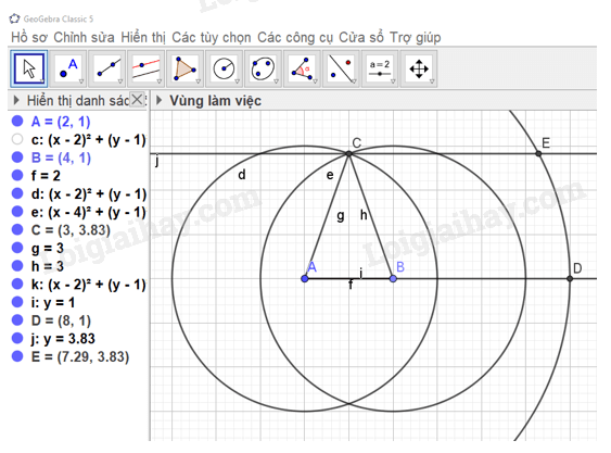 Ẩn các đường tròn, các đường thẳng, đoạn thẳng AB, BC và điểm B. Chọn công cụ