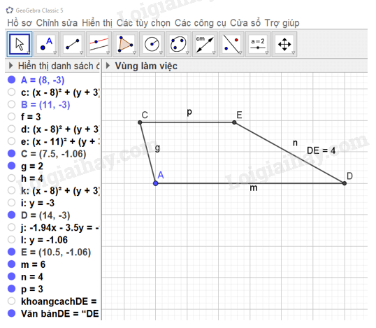 để nối A với D, D với E, E với C và thu được hình thang ADEC.