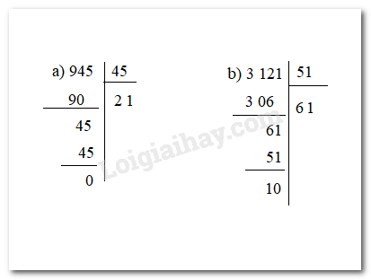 Thực hiện các phép chia sau: a) 945:45; b) 3 121:51