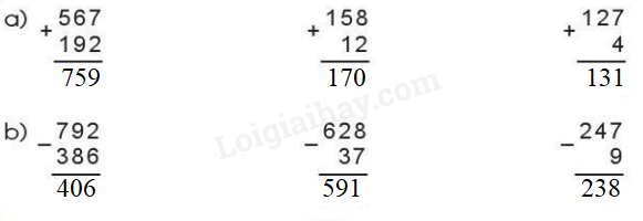 Cộng hoặc trừ các số thẳng cột theo thứ tự từ phải sang trái.