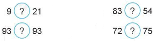 c) Điền dấu (>, <, =) thích hợp vào ô trống.