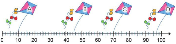 Vậy: Cánh diều A gắn với vạch chỉ số 10 trên tia số.