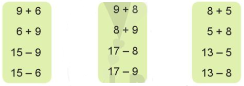 5 + 6 = 11 15 – 9 = 6