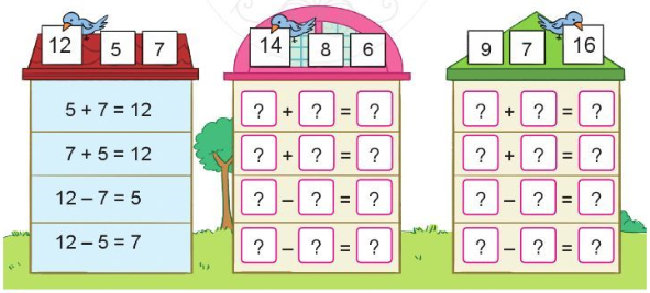 Dựa vào hai phép cộng vừa viết được để viết hai phép trừ tương ứng.
