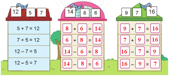 Quan sát ta thấy số trong bảng có chú chim chính là tổng của hai số còn lại.