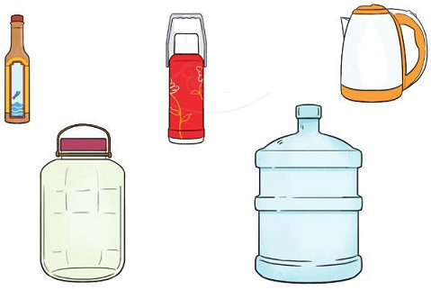 Kể tên một số đồ vật trong thực tế có thể chứa đầy được 1\(l\), 2\(l\), 3\(l\), 10 \(l\), 20 \(l\).