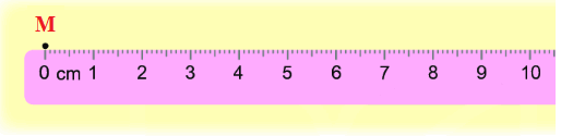 - Bước 2: Đặt thước để vạch số 0 của thước trùng với điểm M vừa chấm.