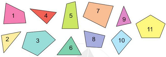 Trong các mảnh bìa đã cho, các mảnh bìa hình tam giác là mảnh bìa số1, mảnh bìa số 5, mảnh bìa số 7, mảnh bìa số 8 và mảnh bìa số 10.