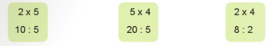 10 : 5 = 2 20 : 5 = 4 8 : 2 = 4