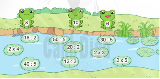 Nêu các phép nhân, phép chia thích hợp với mỗi tranh vẽ: