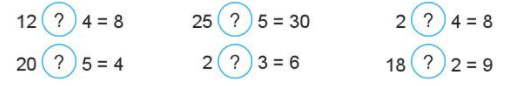 Chọn dấu (+, -, x, :) thích hợp