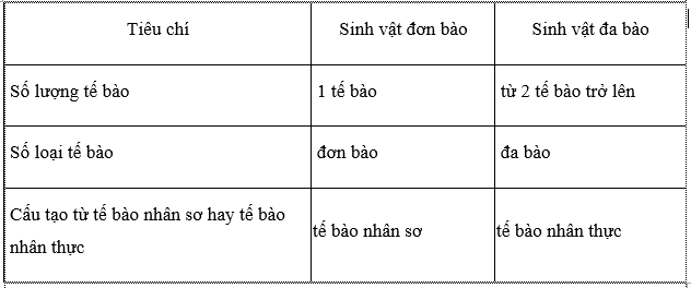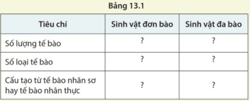 Phân biệt sinh vật đơn bào và sinh vật đa bào theo gợi ý trong bảng 13.1.