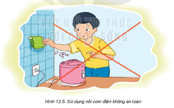 Quan sát Hình 12.5 và chỉ ra những điểm có thể gây mất an toàn khi sử dụng nồi cơm điện.