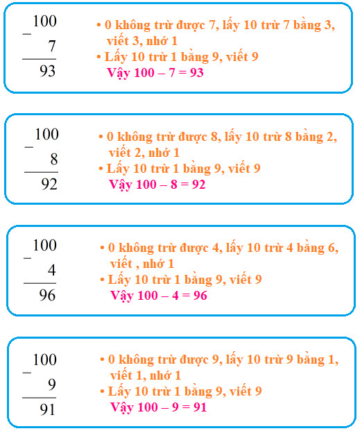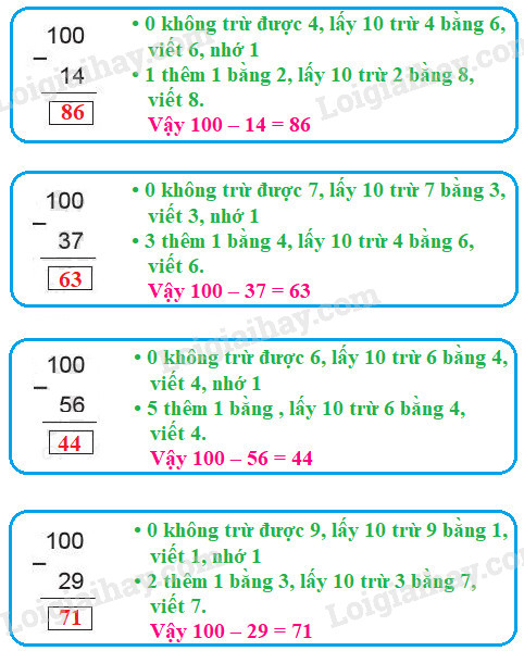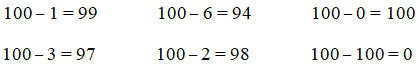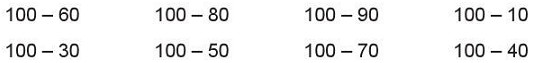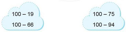 \(\begin{array}{*{20}{c}}{ - \begin{array}{*{20}{c}}{100}\\{\,\,19}\end{array}}\\\hline{\,\,\,\,\,81}\end{array}\) \(\begin{array}{*{20}{c}}{ - \begin{array}{*{20}{c}}{100}\\{\,\,66}\end{array}}\\\hline{\,\,\,\,\,34}\end{array}\)
