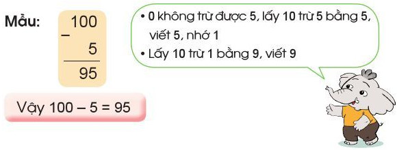 Quan sát mẫu và thực hiện trừ các chữ số lần lượt từ phải sang trái.