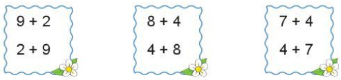 Để thực hiện phép tính 9 + 5, bạn Đức đếm thêm 5 bắt đầu 9 (10, 11, 12, 13, 14) từ đó tìm được kết quả là 14.