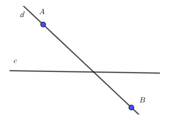 b) Đường thẳng d có cắt đường thẳng c hay không?
