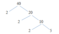 - Vẽ 2 nhánh từ số 40 cho hai số 2 và 20.