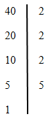 - Lấy 40 chia cho ước nguyên tố 2.