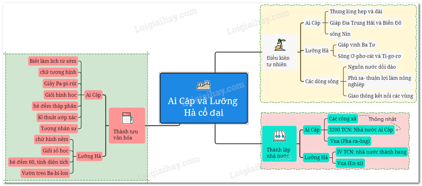 Sơ đồ tư duy Ai Cập và Lưỡng Hà cổ đại