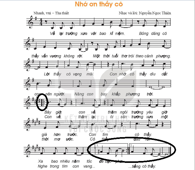 Tìm các kí hiệu âm nhạc trên trong các bài hát đã học.