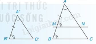 \(\left\{ \begin{array}{l}\Delta ABC,\Delta A'B'C';\\\widehat {A'} = \widehat A,\widehat {B'} = \widehat B\end{array} \right. \Rightarrow \Delta A'B'C' \backsim \Delta ABC\)
