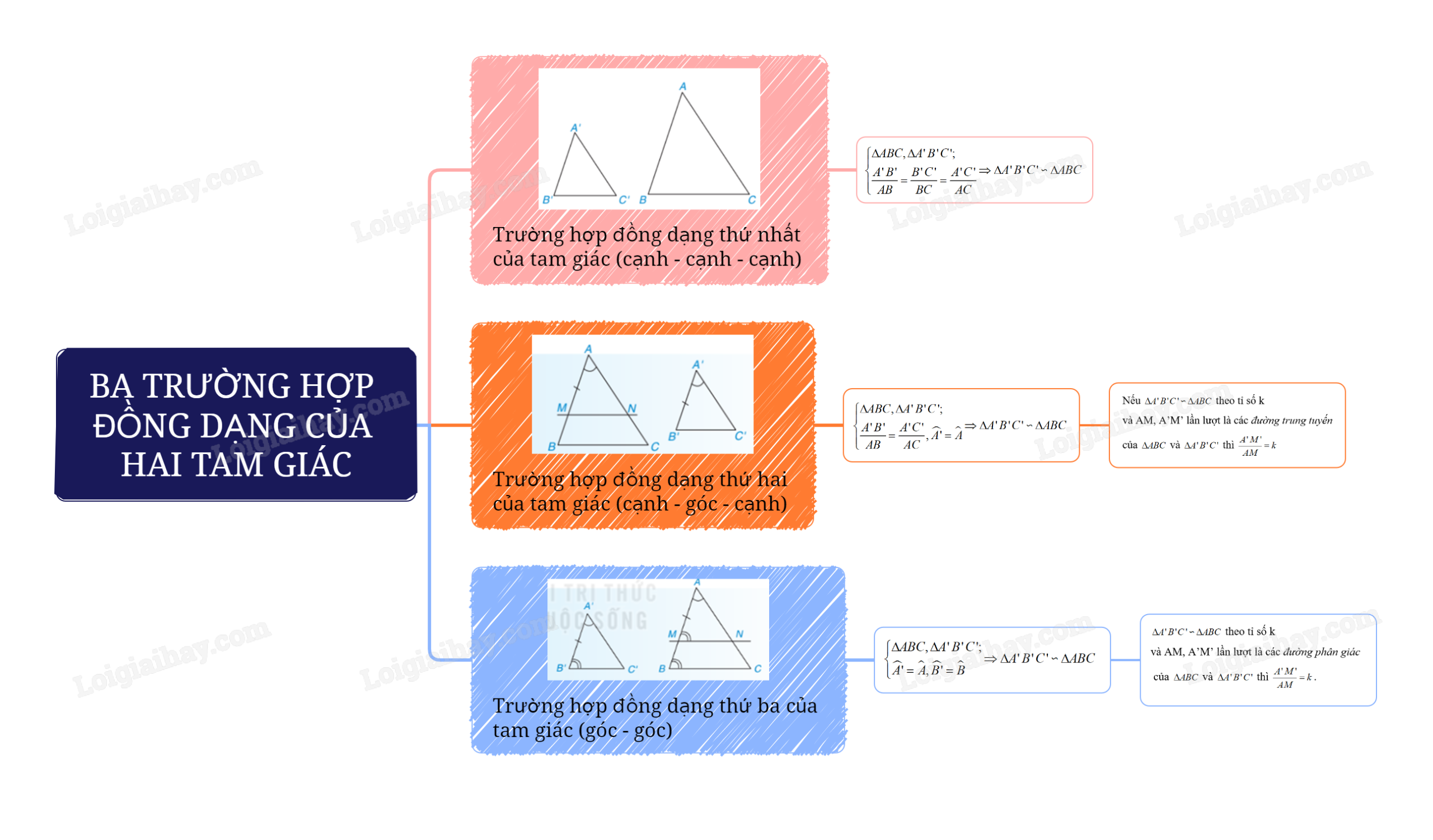 Trường hợp đồng dạng cạnh – cạnh – cạnh: Nếu ba cạnh của tam giác này tỉ lệ với ba cạnh của tam giác kia thì hai tam giác đó đồng dạng với nhau.