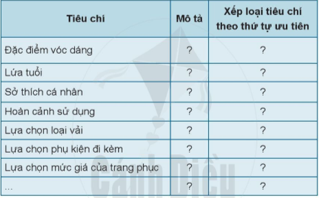 - Bước 2: Xác định, mô tả, xếp loại các tiêu chí lựa chọn trang phục phù hợp
