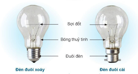 + Sợi đốt: Dây kim loại có dạng lò xo xoắn, thường làm bằng Wolfram chịu được nhiệt độ cao, là bộ phận để phát sáng.
