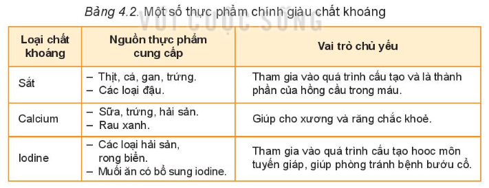 - Chất khoáng (mineral) giúp cho sự phát triển của xương, hoạt động của cơ bắp, cấu tạo hồng càu,…