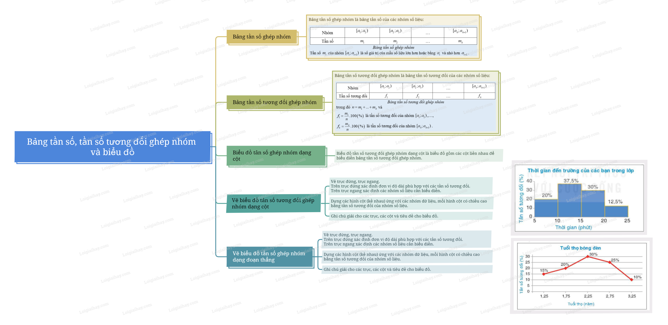 1. Bảng tần số, tần số tương đối ghép nhóm