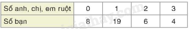 Ví dụ: Vẽ biểu đồ tần số dạng cột và biểu đồ tần số dạng đoạn thẳng biểu diễn bảng thống kê số anh, chị, em ruột của các bạn trong lớp: