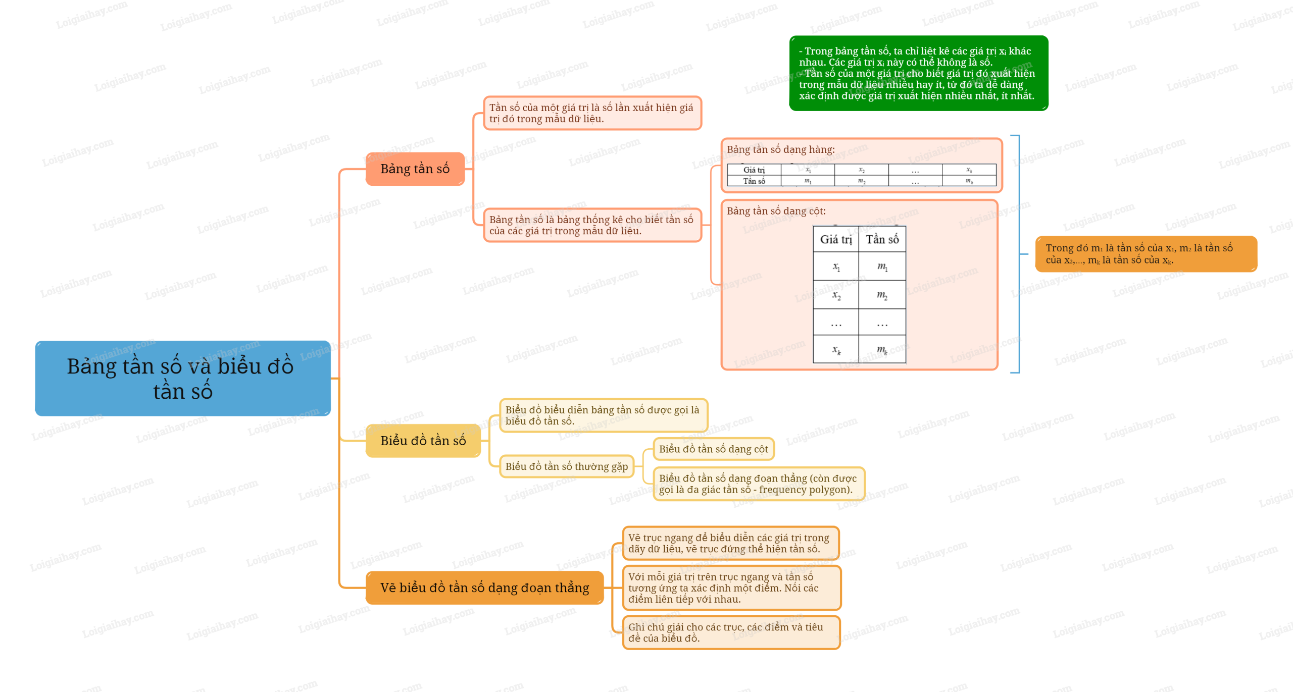 Nhận xét: Trong bảng tần số, ta chỉ liệt kê các giá trị \({x_i}\) khác nhau. Các giá trị \({x_i}\) này có thể không là số.