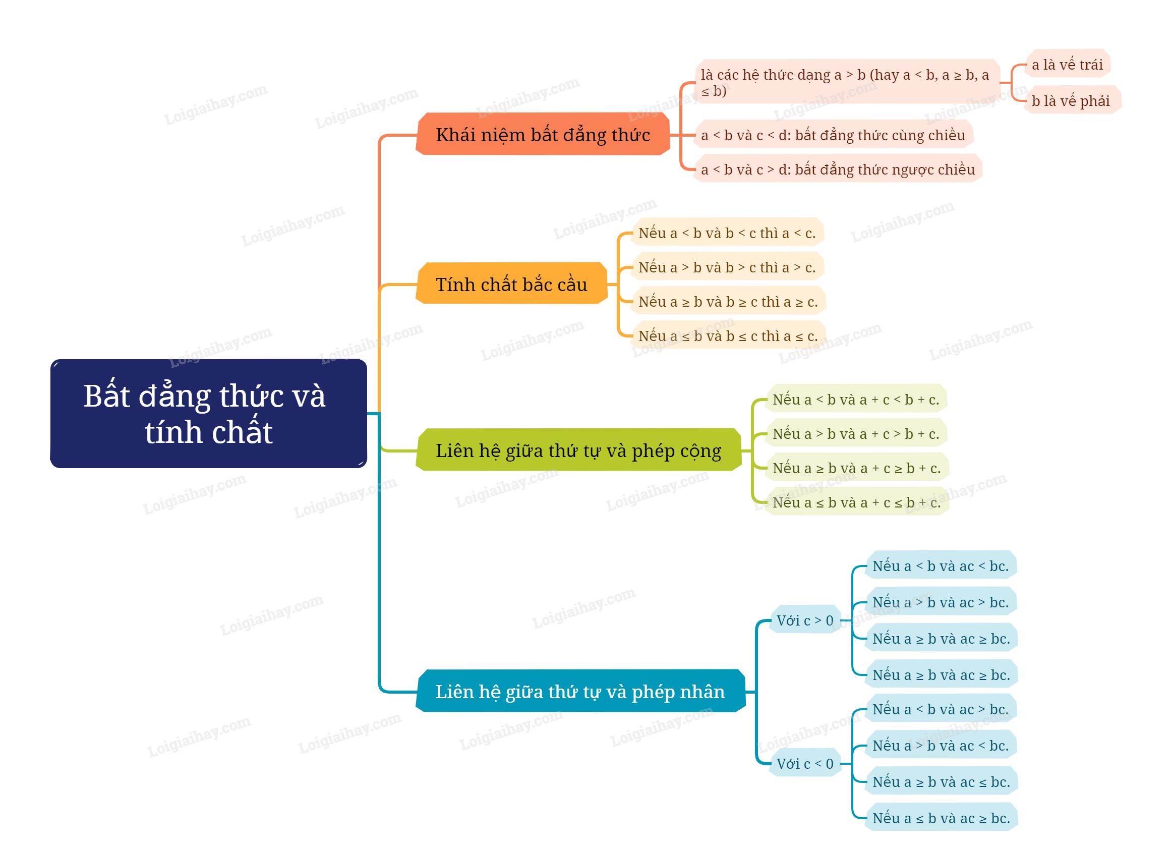 Nếu \(a < b\) và \(b < c\) thì \(a < c\). Nếu \(a > b\) và \(b > c\) thì \(a > c\). Nếu \(a \le b\) và \(b \le c\) thì \(a \le c\). Nếu \(a \ge b\) và \(b \ge c\) thì \(a \ge c\). |