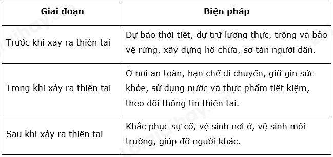 Bảng các giai đoạn và biện pháp phòng tránh thiên tai