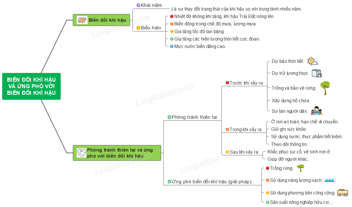 Sơ đồ tư duy biến đổi khí hậu và ứng phó với biến đổi khí hậu