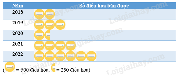 Biểu đồ tranh dưới đây cho biết số điều hòa (máy lạnh) bán được qua các năm của 1 siêu thị điện máy.