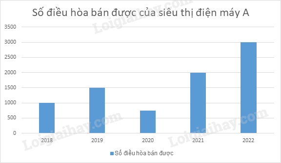 Biểu đồ cột dưới đây cho biết số điều hòa (máy lạnh) bán được qua các năm của 1 siêu thị điện máy.