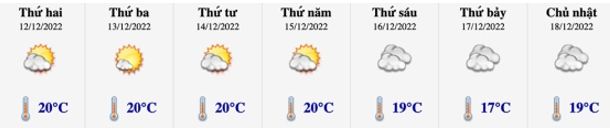 Ví dụ: Cho bảng nhiệt độ trung bình trong tuần (12/12/2022-18/12/2022) tại Thủ đô Hà Nội