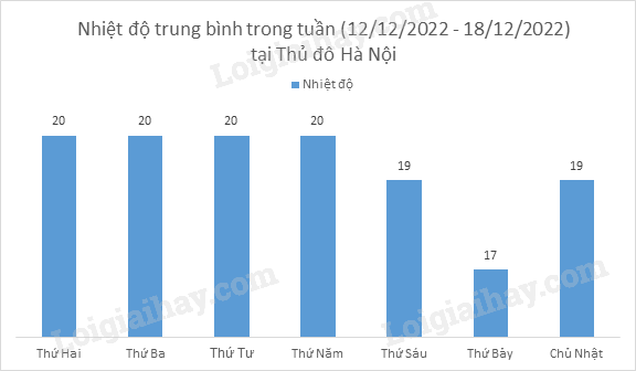 Biểu đồ cột biểu thị nhiệt độ trung bình trong tuần (12/12/2022 – 18/12/2022) tại Thủ đô Hà Nội