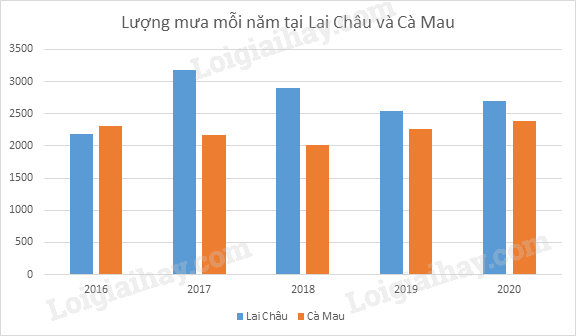 Ví dụ, ta có biểu đồ lượng mua mỗi năm tại Lai Châu và Cà Mau: